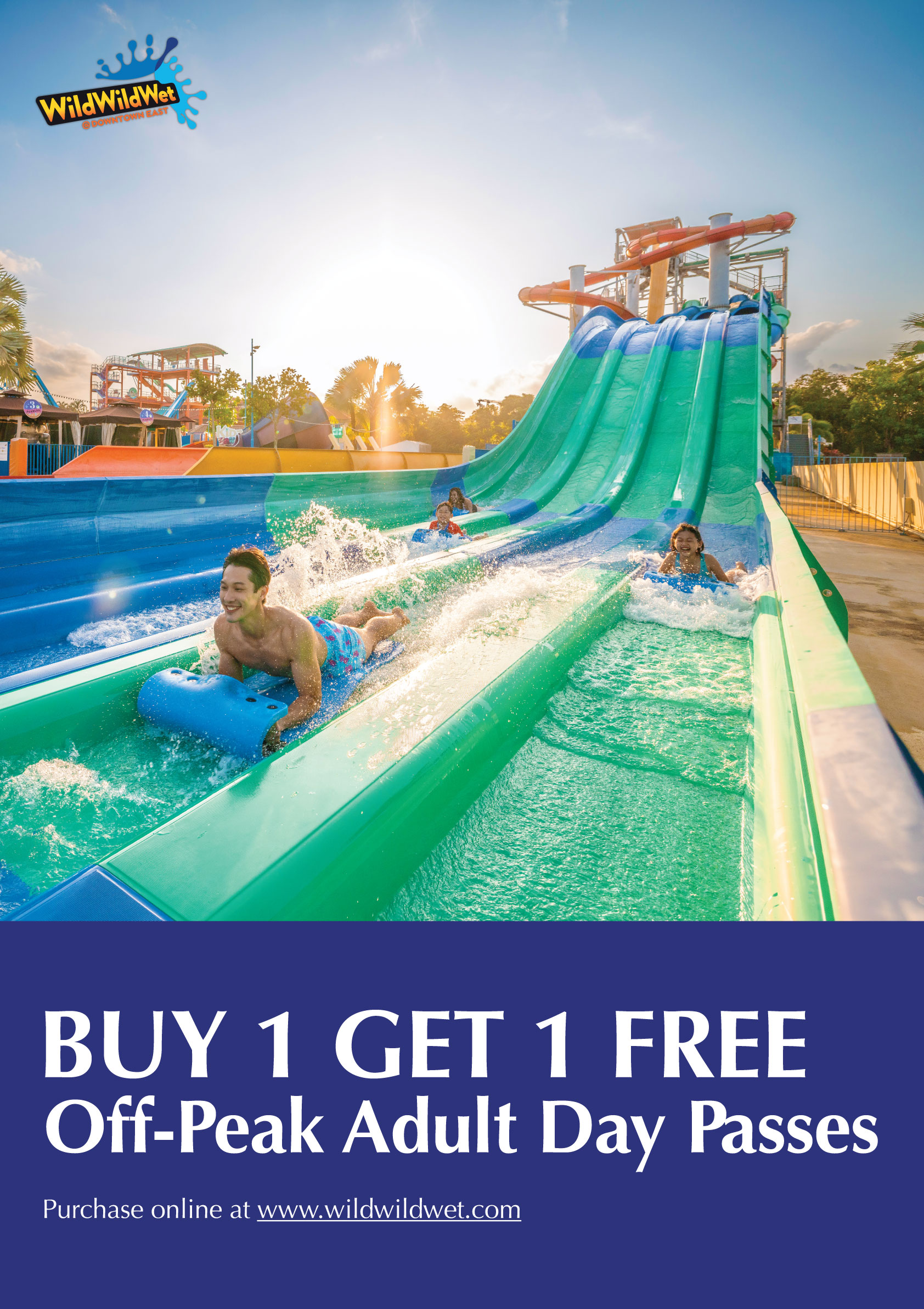 • Offer is only valid for Wild Wild Wet Day Passes at board rates. Verification will be carried out at Wild Wild Wet Entrance.